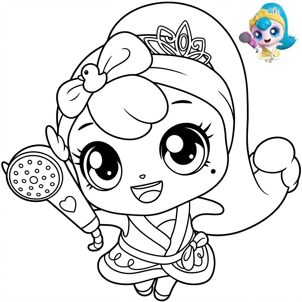 항상 주변을 깨끗하게 청소하고 닦는 것을 좋아하는 뽀득핑이에요. 반짝반짝 빛나는 뽀득핑의 드레스와 청소 도구들을 예쁜 색으로 채워주세요!